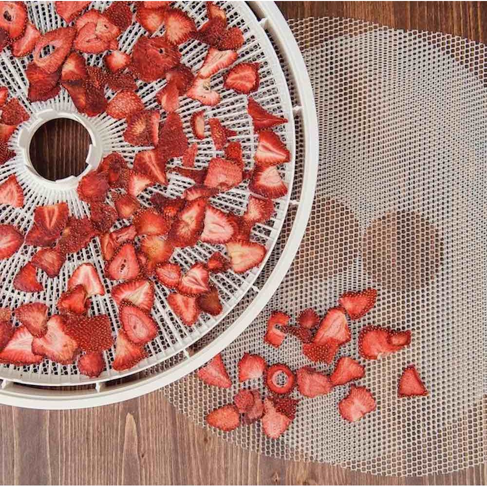 - Tinklinis lakštas Ezidri yra labai lankstus, jis padeda po džiovinimo geriau nuimti lipnius ir klampius produktus. Be tinklinių lakštų šie maisto produktai labai perdžiūsta ir prilimpa prie padėklo. Reikia daug laiko norint juos nuimti. Tinklelis yra lankstus ir leidžia lengvai nuimti produktus. Produktų gabaliukai nelūžta, bet išlaiko gražią išvaizdą ir formą.